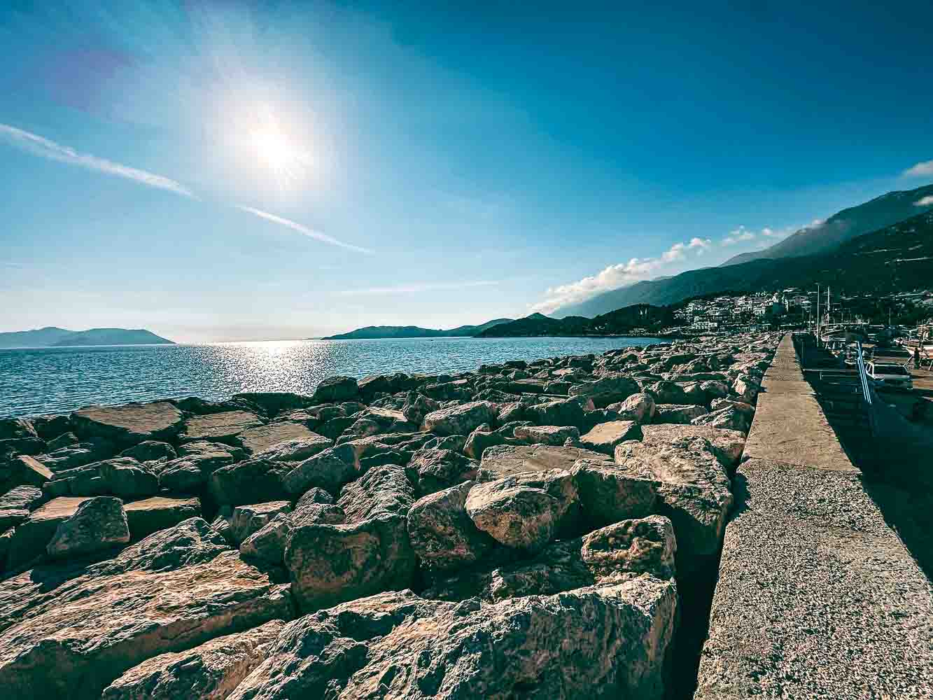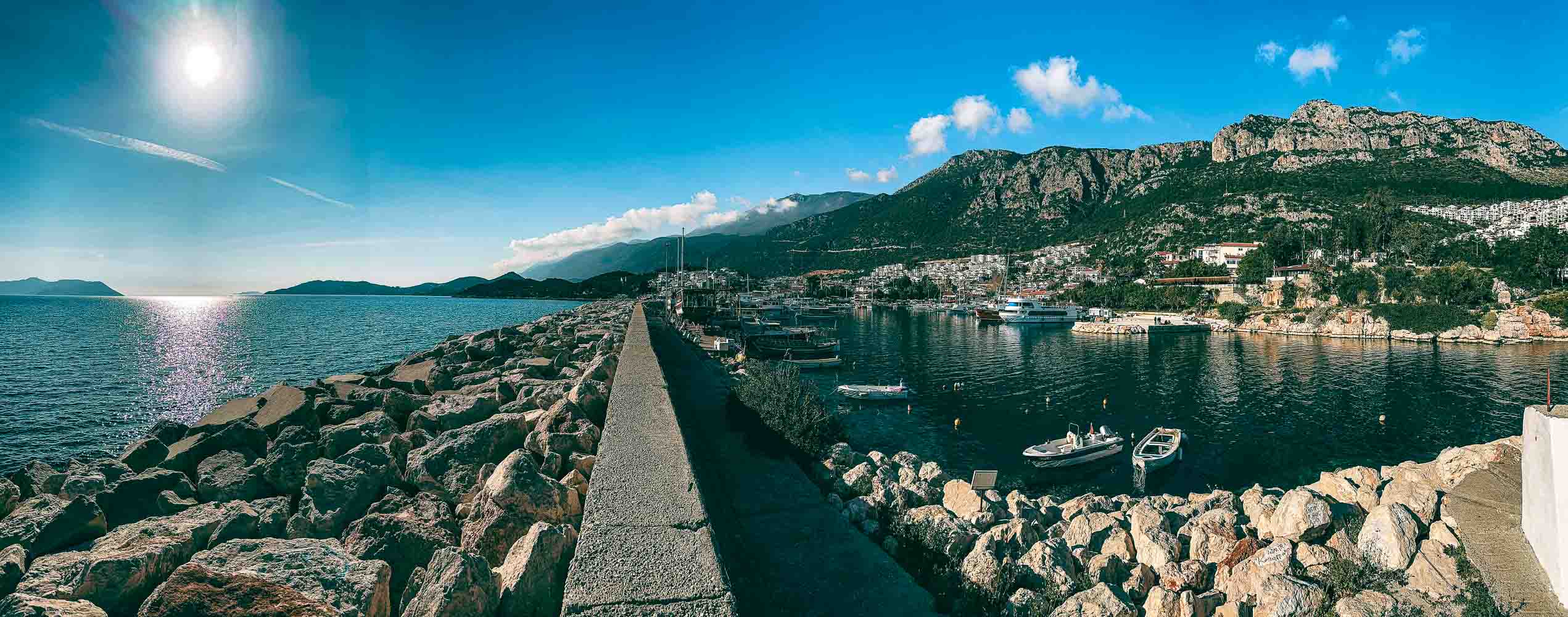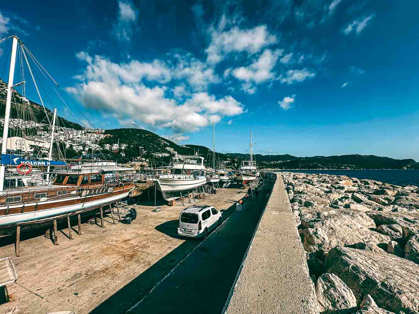 Kaş Mendirek limanı dalgalardan koruyor. Bu yüzden, tekneler burayı çok seviyor. Ancak, sadece bu değil; aynı zamanda sen burada harika bir yürüyüş yapıyorsun. Mesela, mendirek boyunca ilerlerken sağında masmavi denizi görüyorsun. Solunda ise Kaş’ın Meydanı ve renkli evlerini görürken, Uyuyan Dev'de sana eşlik ediyor.
