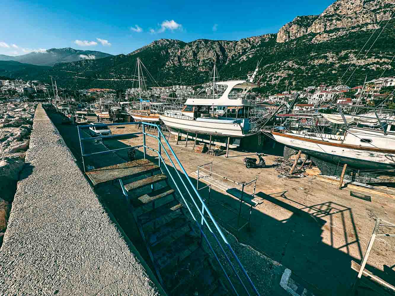Kaş zaten muhteşem bir yer. Ancak, Kaş Mendirek ve deniz feneri buranın gizli hazineleri. Mesela, Kaş Limanının içinde olduğu için kolayca ulaşıyorsun. Ayrıca, giriş ücretsiz; cebin yanmıyor. Unutma ki; burada kışın gezi tekneleri bakıma alınıyor. Yazın ise gezi tekneleri suya indiği için limanın içi Otopark olarak kullanılıyor.