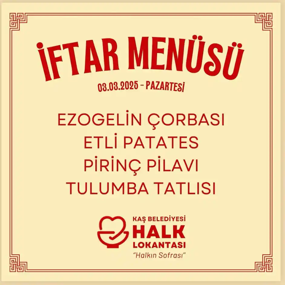 Sosyal dayanışmayı güçlendiren projelerden biri olan Kaş Belediyesi Halk Lokantası, Ramazan ayı boyunca iftar saatlerinde ücretsiz yemek servisi sunuyor. Ramazan ayı dışında öğlen saatlerinde açık olan Kaş Halk Lokantası, ramazan ayı boyunca sadece iftar saatleride açık. Bu hizmet, özellikle ihtiyaç sahipleri için büyük bir kolaylık sağlıyor.